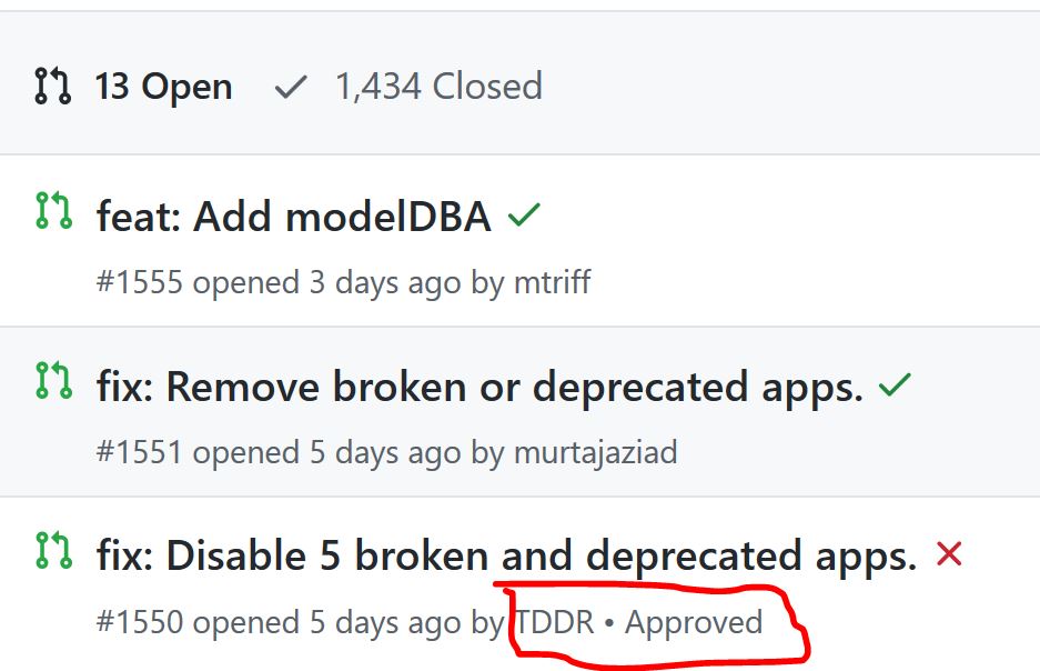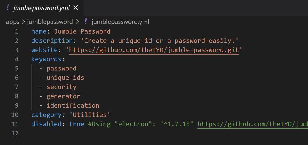 The issuer only wants a maximum of five disabled apps per PR in order to let more people get involved in the process for Hacktoberfest. After finding five apps I did a commit and made the PR. There were a couple of the apps I was unsure about because even though it said they were using an older version of Electron they had new version of electron-builder, or electron-packager. So I highlighted my concern in the PR request.