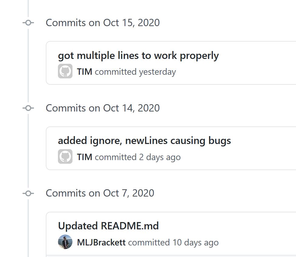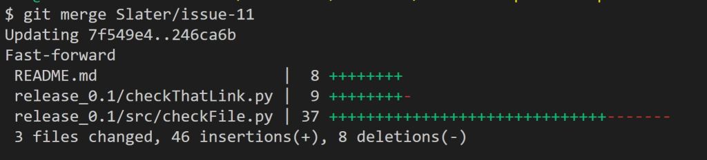 After slaterslater told me they were done it was time to review the work. After testing out the code I found one minor issue were the code did not fully meet the requirements. I let Slater know about it and a few hours later he gave an update saying it was ready for review again. Everything is working as it should be. Now the final step is to manually merge their working branch into my master branch.