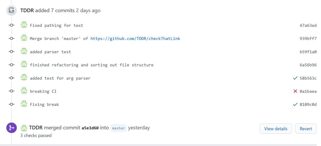 Time to test out the CI. I did this my making sure my test originally passes, then break it, and then fix the break.