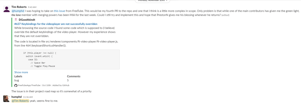 It’s like this issue was meant for me. This will be the perfect issue to take on for the final release. It’s a complicated issue that will have a visible impact on how the application works. It will also push FreeTube one step closer to release 0.10, which I have already helped with!